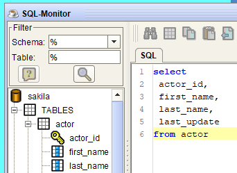 The SQL Monitor allows to type in whatever SQL-command you wish. Find all the DB-objects within the DB-tree on the left. Click Help or the right mouse button to find out many things supporting you work